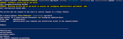 Let's use this against a DC. Run the below command with DA privileges to create a JEA Endpoint 'microsoft.powershell64' which allows access to labuser: