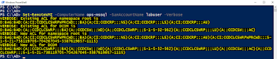 Similarly, we can modify ACLs to access a machine using WMI without admin privileges. In case of WMI, we need to modify ACLs for DCOM endpoint and also for namespaces. For namespaces, we can do it for all of them or only a specific one. The below command does it for all the namespaces: