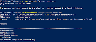 Please note both the methods are verbose in the logs. Service creation, service configuration changes and service stop/start is logged. Therefore, this method is not recommended on DCs or when you want to be stealthy.